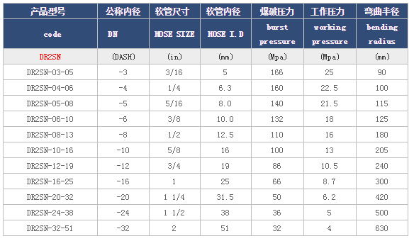 Applicable standards:EN853 2SN,GB/T3683 2SN,SAE J517 R1S,ISO 1433 2SN.